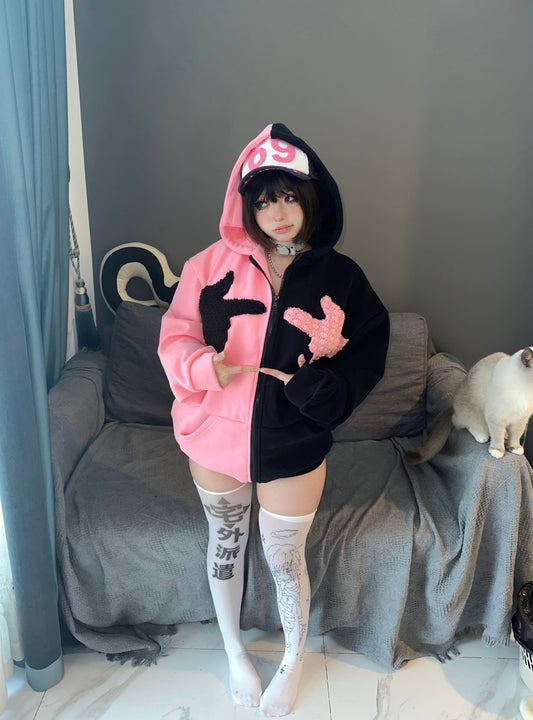 Bộ áo ngực và áo hoodie tháo rời Drawabitch màu hồng và đen